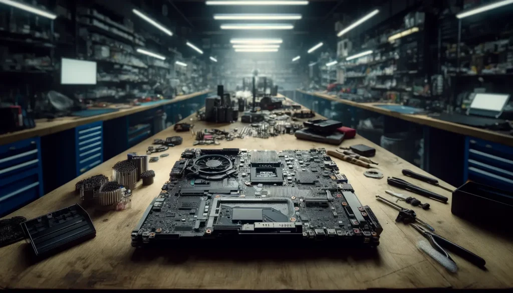 Примерно через месяц клиент снова пришел к нам, сообщив о новых проблемах с ноутбуком при тяжелых играх 🎮. Мы взяли ноутбук на гарантийную проверку и тщательную диагностику ноутбука. Оказалось, что китайская материнская плата была некачественной. Мы приняли решение собрать одну рабочую материнскую плату из двух, используя детали со старой и новой.